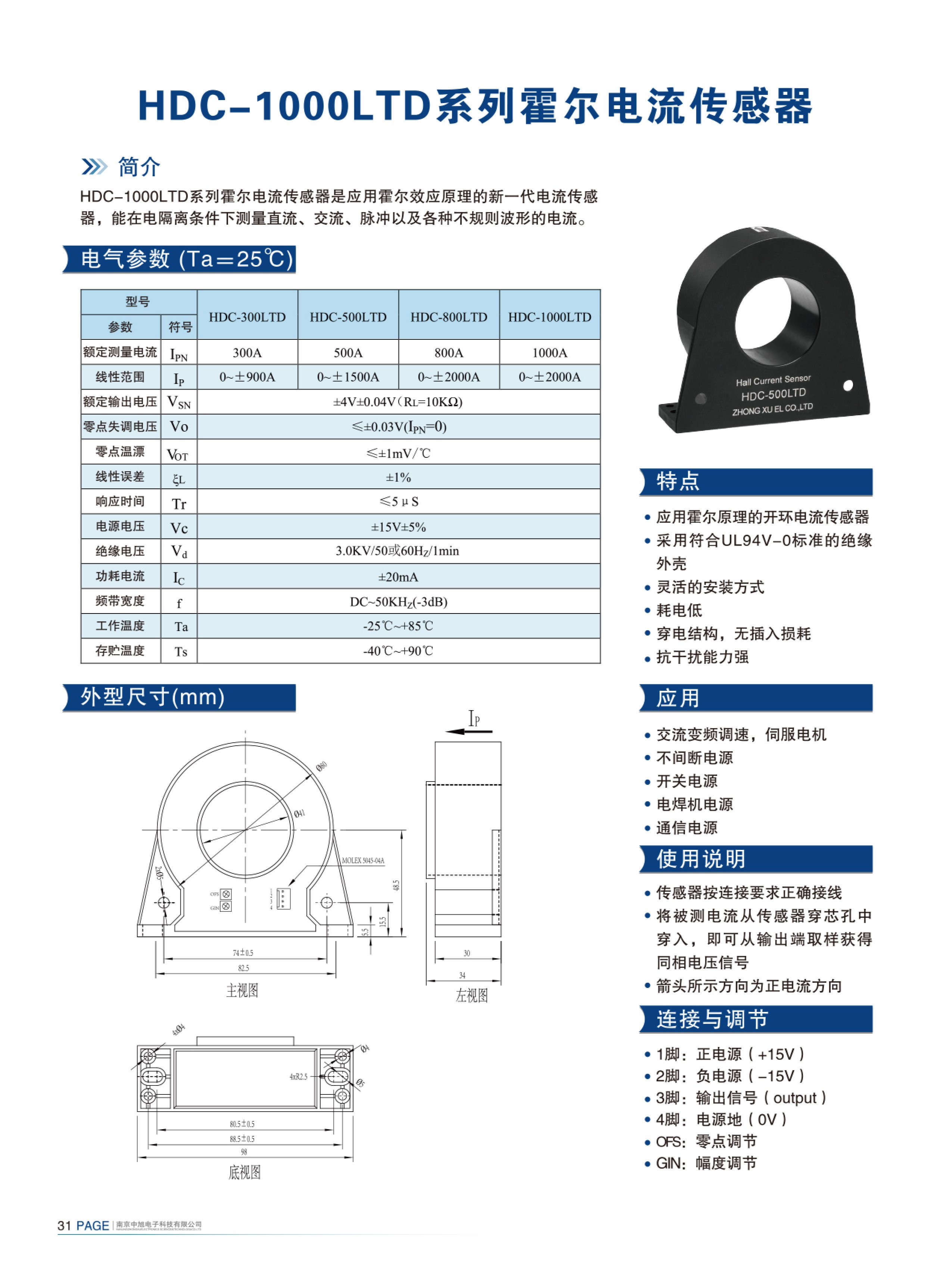 HDC-1000LTD系列霍爾電流傳感器是應(yīng)用霍爾效應(yīng)原理的新一代電流傳感器,能在電隔離條件下測量直流、交流、脈沖以及各種不規(guī)則波形的電流。
